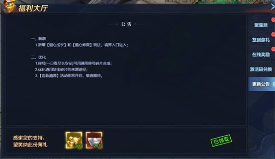 每过一段时间,聚宝鼎中都会自动生产大量资源,可直接领取